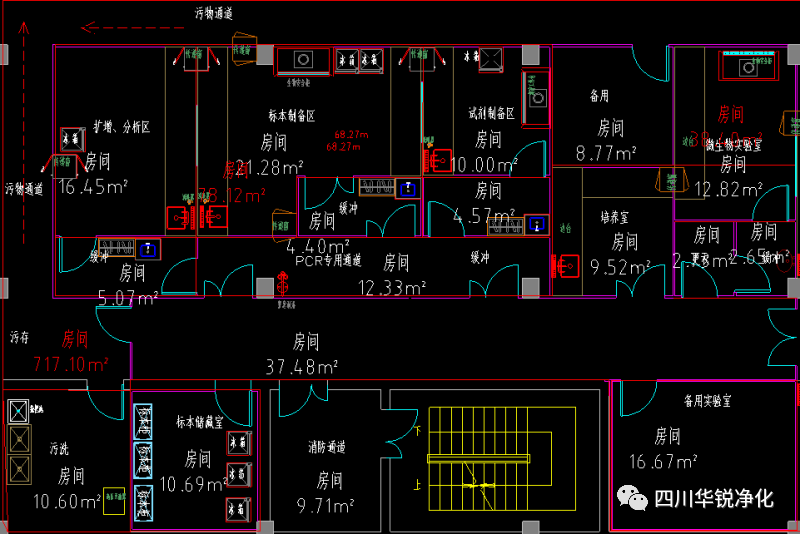 醫(yī)院檢驗科主要由醫(yī)生通道、污物通道、樣品接收等通道形成,主要功能房間有PCR實驗室、擴增分析區(qū)、標本制備區(qū)、試劑制備區(qū)、微生物實驗室、污物清洗間、備用實驗室、臨檢生化檢驗大廳、體液室、標本前處理室、收血室、發(fā)血室、儲血室、常溫庫、低溫冷庫、男女更衣室、值班室、辦公室等房間組成。